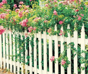 Růže a bíle natřený laťkový plot - nápady pro tvorbu předzahrádky (READERS DIGEST VÝBĚR)